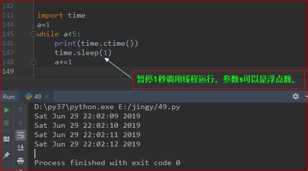 time.sleep(s):暂停s秒调用线程运行。参数s可以是浮点数。
