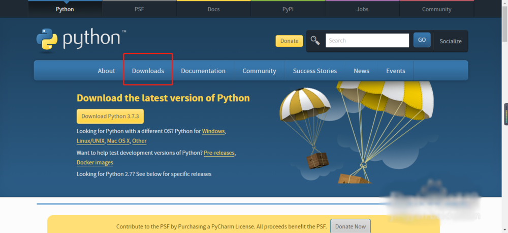 我要安装的是2.7版本,所以选择导航条上的Downloads。