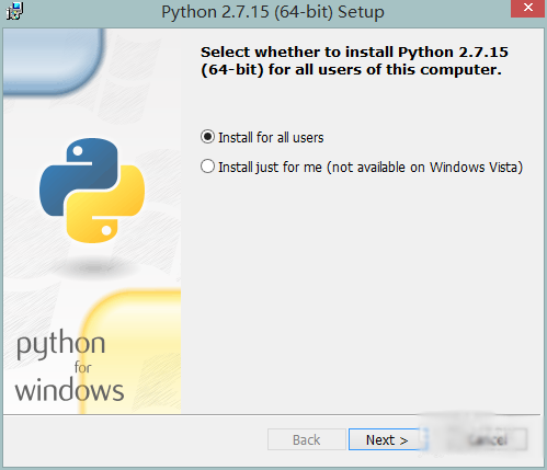 第一步是选择是否为所有用户安装,直接点击下一步,为所有用户安装。