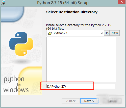 再选择安装路径,默认是C:\Python27\,可直接下一步。