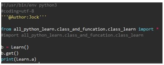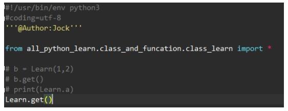 这里通过from导入了模块class_learn里的类,然后通过类的实例化实例了一个b的对象,然后通过对象b调用了类里的get函数。这里我加了个print(Learn.a)就是想说直接通过类名接上变量名可以调用类的变量。