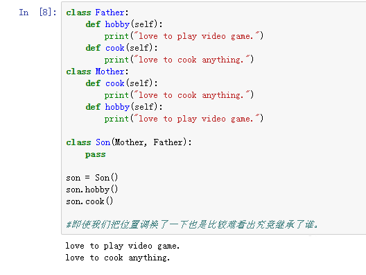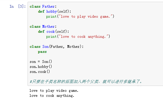 #只要在子类名称的后面加入两个父类,就可以进行多继承了。