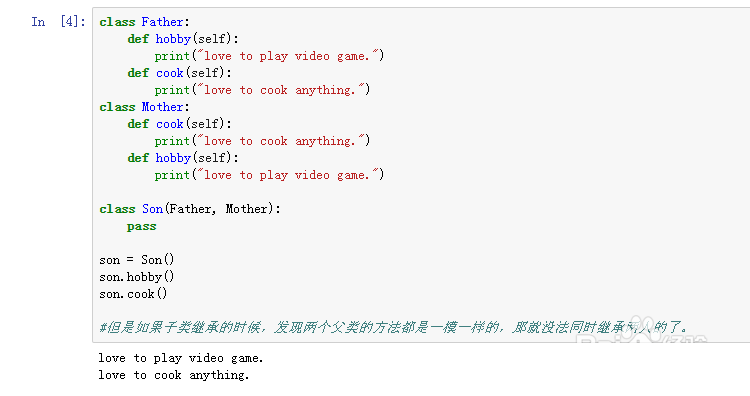 #但是如果子类继承的时候,发现两个父类的方法都是一模一样的,那就没法同时继承两人的了。