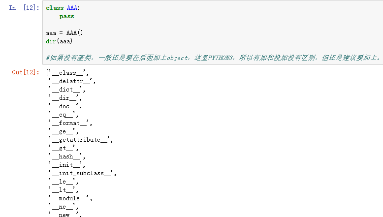 #如果没有基类,一般还是要在后面加上object,这里PYTHON3,所以有加和没加没有区别,但还是建议要加上。