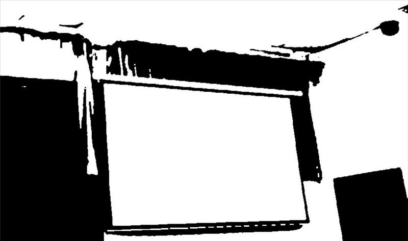矩形的检测主要是提取边缘,PPT显示部分的亮度通常高于周围环境,我们可以将图片阈值化,将PPT部分与周围环境明显的分别开来,这对后边的边缘检测非常有帮助。