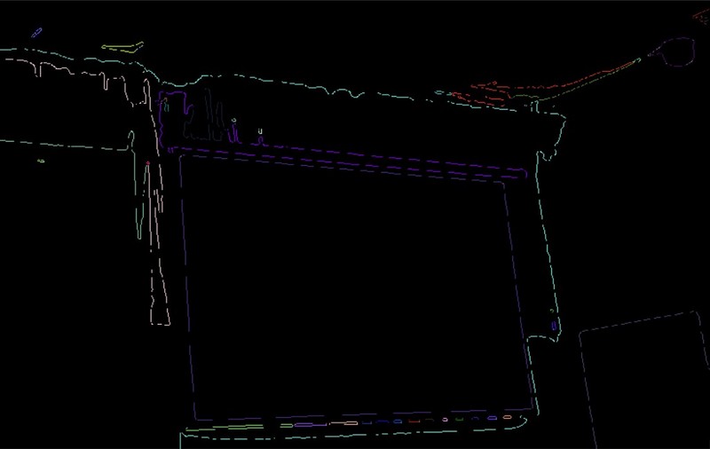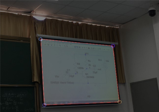 我们利用了屏幕亮度较高的特点,通过二值化突出轮廓提取坐标,进行透视变换。