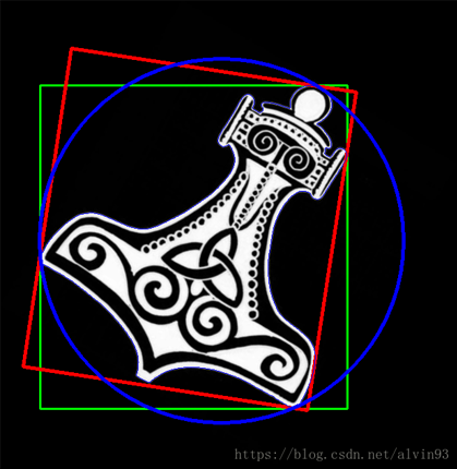 # minEnclosingCircle()会返回一个二元数组,第一个是圆心坐标组成的元祖,第二个元素是元的半径