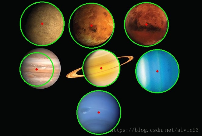 有一个问题,该方法检测出来的第二行的第一个星球的圆检测与书中不一样。