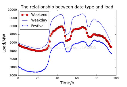 ll=plt.legend([line1,line2,line3],["Weekend", "Weekday","Festival"],loc='upper left')#添加图例