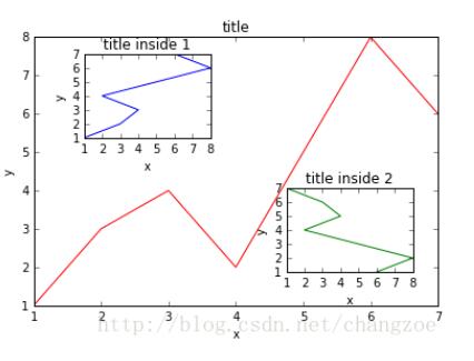 注意,4个值都是占整个figure坐标系的百分比。在这里,假设figure的大小是10x10,那么大图就被包含在由(1, 1)开始,宽8,高8的坐标系内。