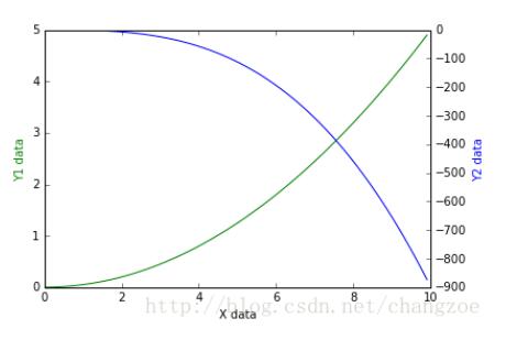 有时候我们会用到次坐标轴,即在同个图上有第2个y轴存在。同样可以用matplotlib做到