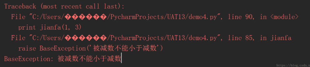 抛出解释:如果错误没有被捕获,它就会一直往上抛,最后被Python解释器捕获,打印一个错误信息,然后程序退出:语法:raise 异常类名 (错误信息)