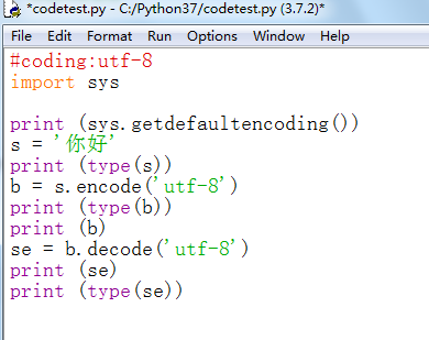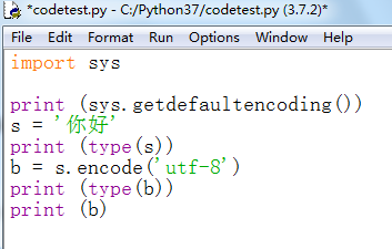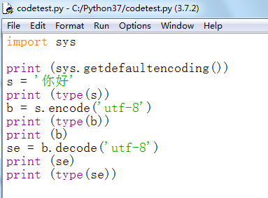 打开python开发工具IDLE,新建‘codetest.py'文件,并写代码如下: