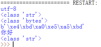 F5运行程序,打印出内容如下,中文必须用utf-8编码,因为ascii码表示不了所有汉字,这里暂时不介绍gbk编码,现在用得很少了,utf-8使用3个字节表示一个汉字,ascii使用一个字节表示一个英文字母或字符。