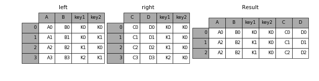 In [47]: result = pd.merge(left, right, how='inner', on=['key1', 'key2'])