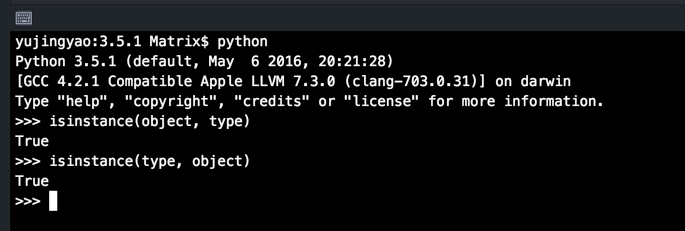 isinstance(object, type) isinstance(type, object)