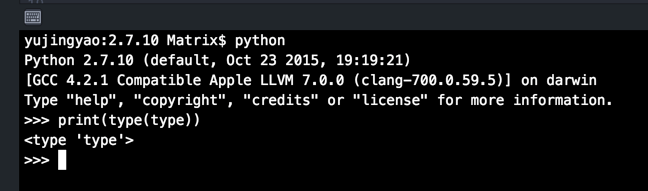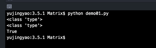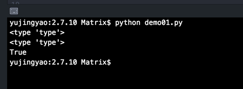 注:在运行结果中,Python 2.x 显示为 <type 'type'>,而 Python 3.x 显示为<class 'type'>, 仅是显示方法不同,可以理解为等价,因为在Python 3.x类即类型。
