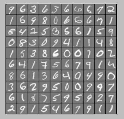 随机显示100个手写数字