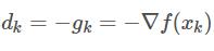 为负梯度方向,即最速下降方向,αkαk为搜索步长。