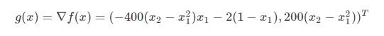 梯度 g(x)=(-400*(x(2)-x(1)^2)*x(1)-2*(1-x(1)),200*(x(2)-x(1)^2))^(T)