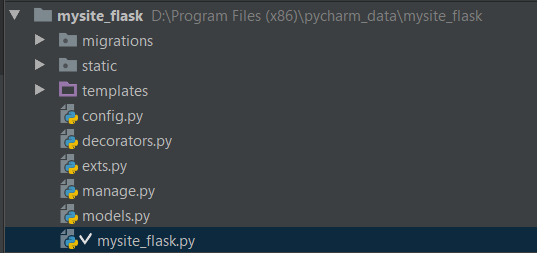 2.我们还要配置好数据库,这里应用的是mysql,默认成功安装了,然后在mysql上创建相关的数据库,在终端进去到项目的根目录,下图是我的项目,目录结构如下,/var/www/mysite_flask