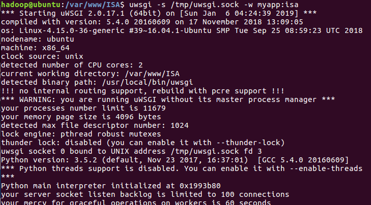 uwsgi -s /tmp/uwsgi.sock -w myapp:isa