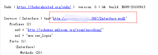 from suds.client import Client url = 'http://ip:port/?wsdl' cilent=Client(url) print cilent