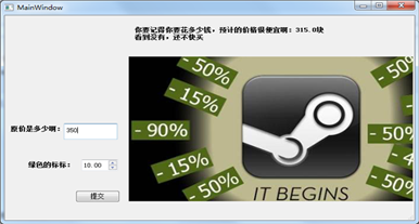 其中,“原价是多少啊”,“绿色的标标”这些文字类的控件是QLabel,第一个框框是QTextEdit,第二个标标是QDoubleSpinBox,或者使用QSpinBox都行,两者主要是数字类型的不同,