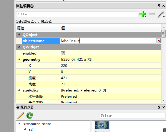 图片显示本身是QLabel,所以显示图片需要先在设计器中放置一个QLbel控件,改控件在程序中没有改动,所以名字默认就好,接下来还需要在资源管理器中添加资源文件,如图: