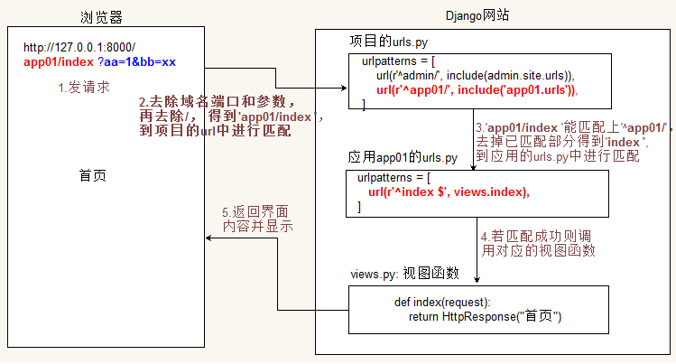 通过http://127.0.0.1:8080/app01/index地址,要调用视图函数index访问首页。则可配置如下(域名和端口号不需要配置,只需要配置 app01/index 部分):