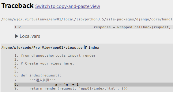 查看 Traceback中的出错行