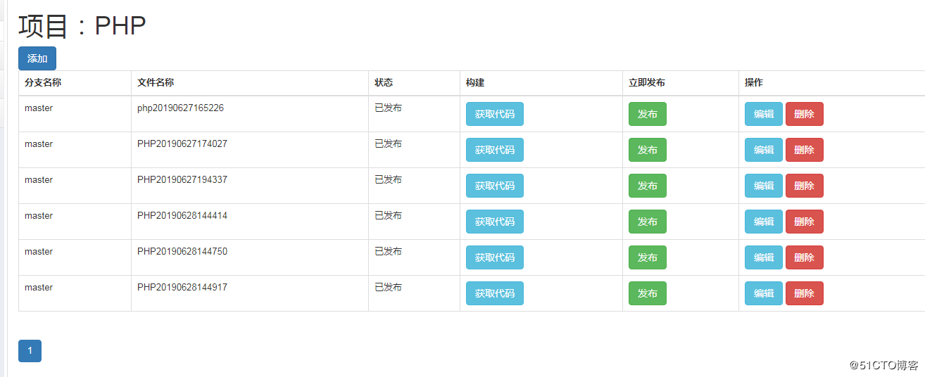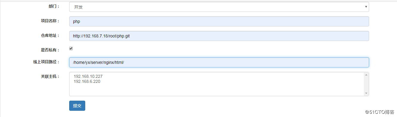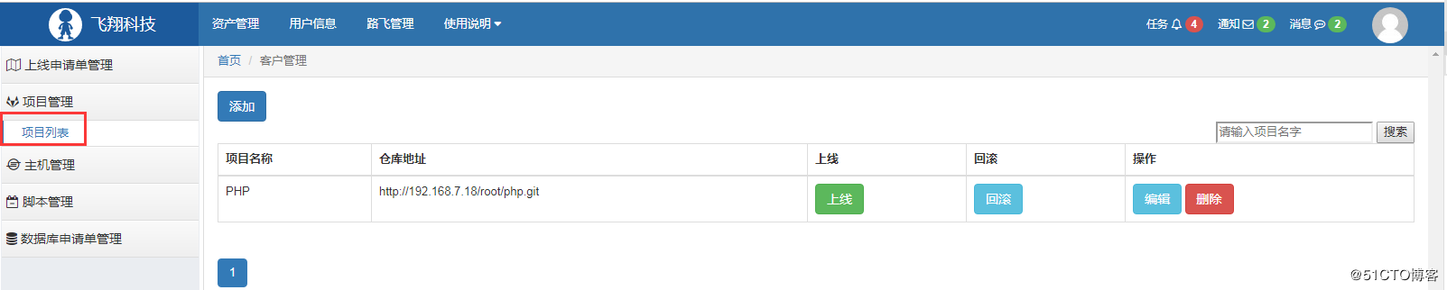 1 找到项目列表,添加你所需要的一个项目,包括仓库地址,选择这个项目要发布到那台主机上面