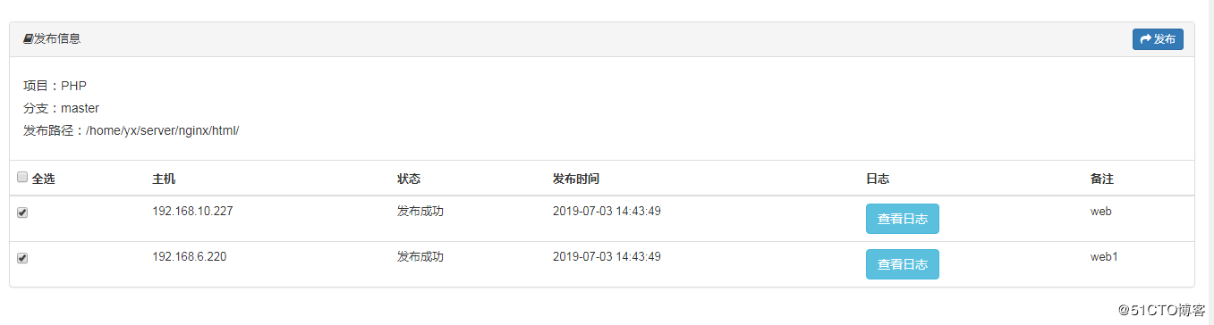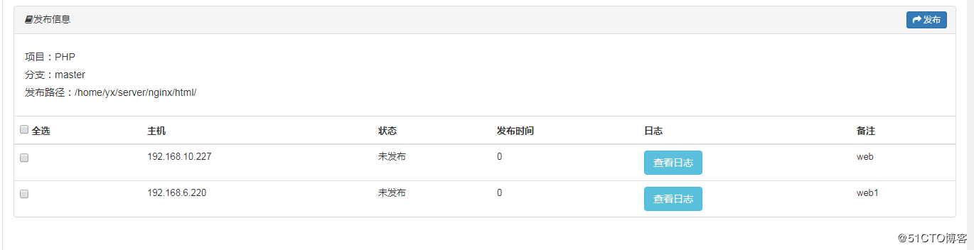 然后我点发布,如下所示,选中你要发布的主机