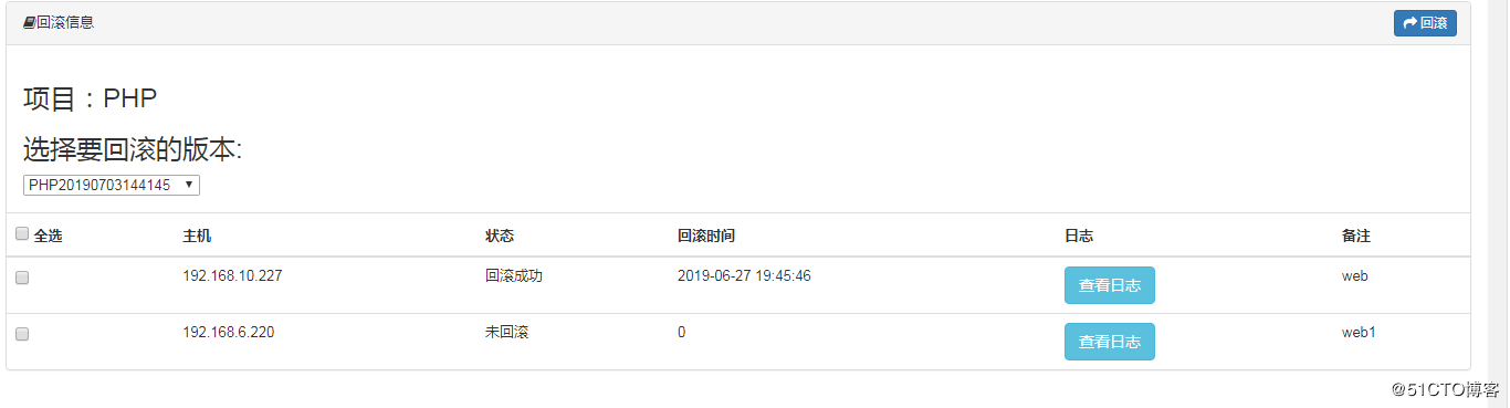还是找的项目列表,点击回滚按钮,如下所示: