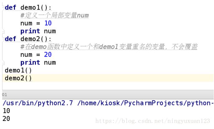 不同的函数,可以定义相同的名字的局部变量,但是各用各的不会产生影响