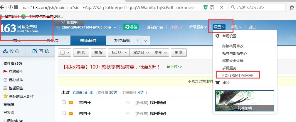 找到设置,设置一个授权码,授权码的目的仅仅是让你有权限发邮件,但是不能登录到邮箱进行修改,发送邮件时,可以代替密码