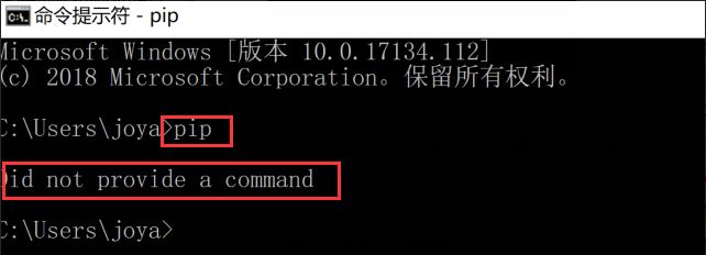 1)在运行pip命令这里,有可能你会遇到如下这样的提示:Did not provide a command