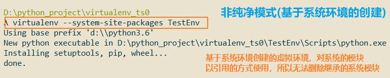 创建虚拟环境有2中模式,一个是纯净模式,一个是基于系统环境的创建(自带了系统装的所有模块)