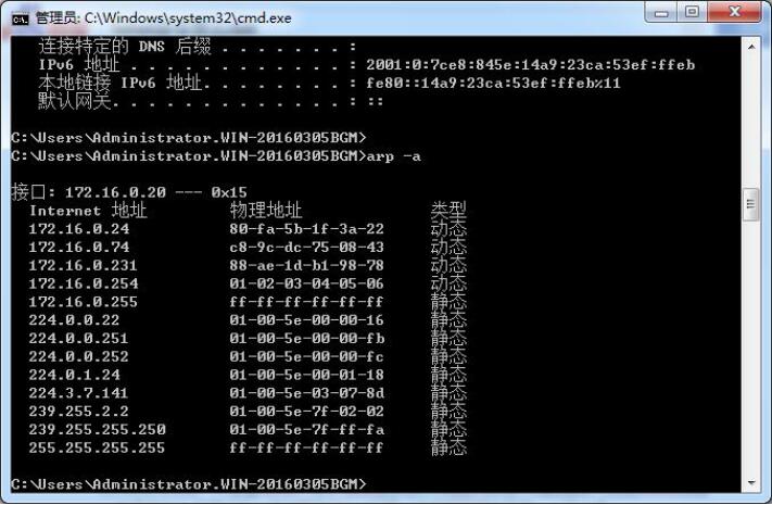 网关172.16.0.254的MAC地址已经从00:05:66:00:29:69变成01:02:03:04:05:06,成功!