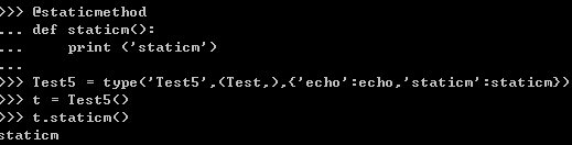 Test5 = type('Test5',(Test,),{'echo':echo,'staticm':staticm})