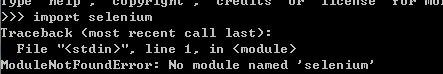 尝试导入selenium包,报错,说明尚未安装selenium
