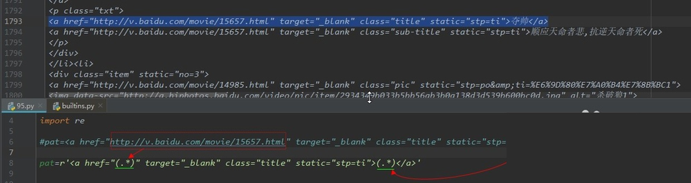 ②将要提取的网址和和电影名替换为(.*),这只是暂时的,可以在接下来的代码中调整。