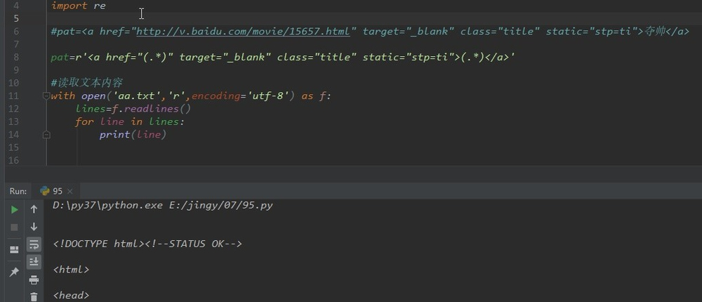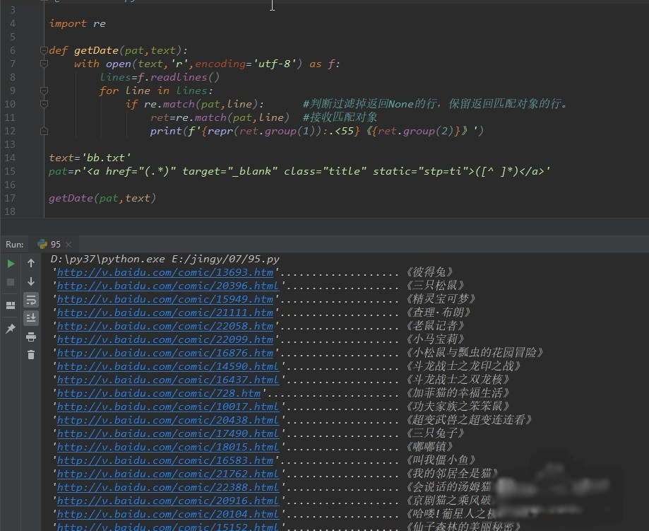 ----所以才将网页的每行放入列表,以供match函数对每行操作。