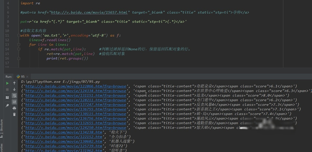 测试: 百度视频的电影,电视剧,和动漫等栏目,网页上的格式基本相同,所以用上面的函数直接套用。