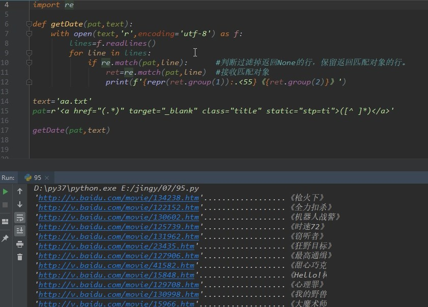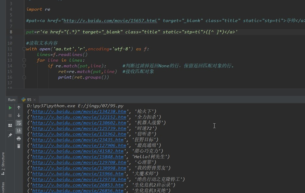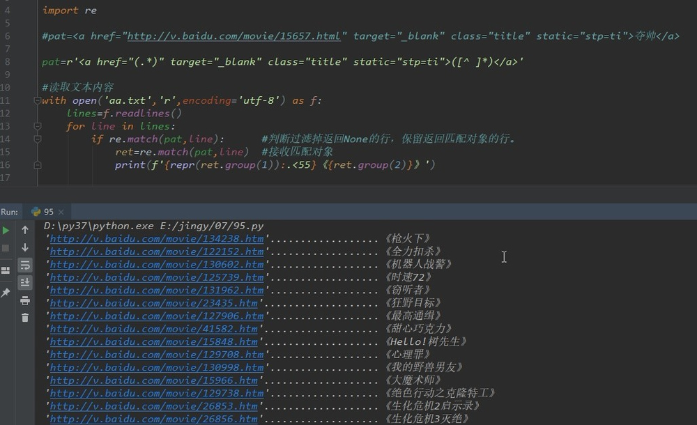 比如要在文档中,提取电影的网址,和电影名。