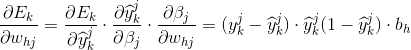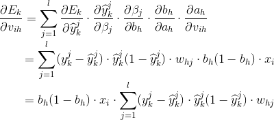 (2)中的结果比(1)中的结果多了一个求和公式,这是因为计算隐层与输入层之间的参数时,输出层与隐层的每一个节点都有影响。