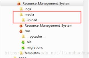 在Resource_Management_System目录,新建了media目录和media的子目录upload(用于存储上传的各种文件,实际中可能要对目录再进行规划)