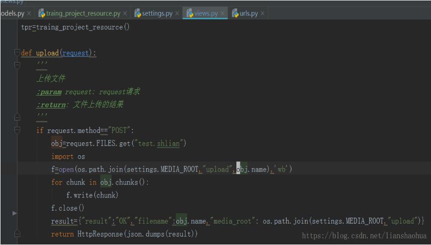 39-42行,是具体的写文件代码,把文件写到MEDIA_ROOT目录的upload目录