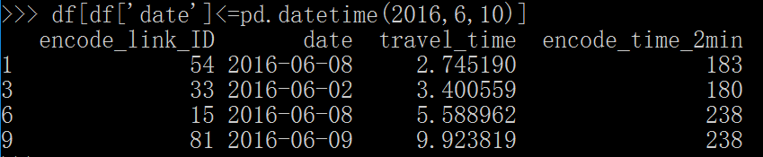 红框中的date这一列数据类型是datetime64[ns],下面我们就可以对日期做大小的判断。