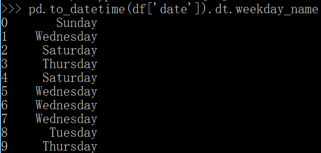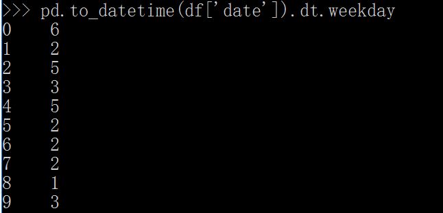 假如,在数据集df中,我们需要对日期添加今天是周几的信息。我们可以这样做: